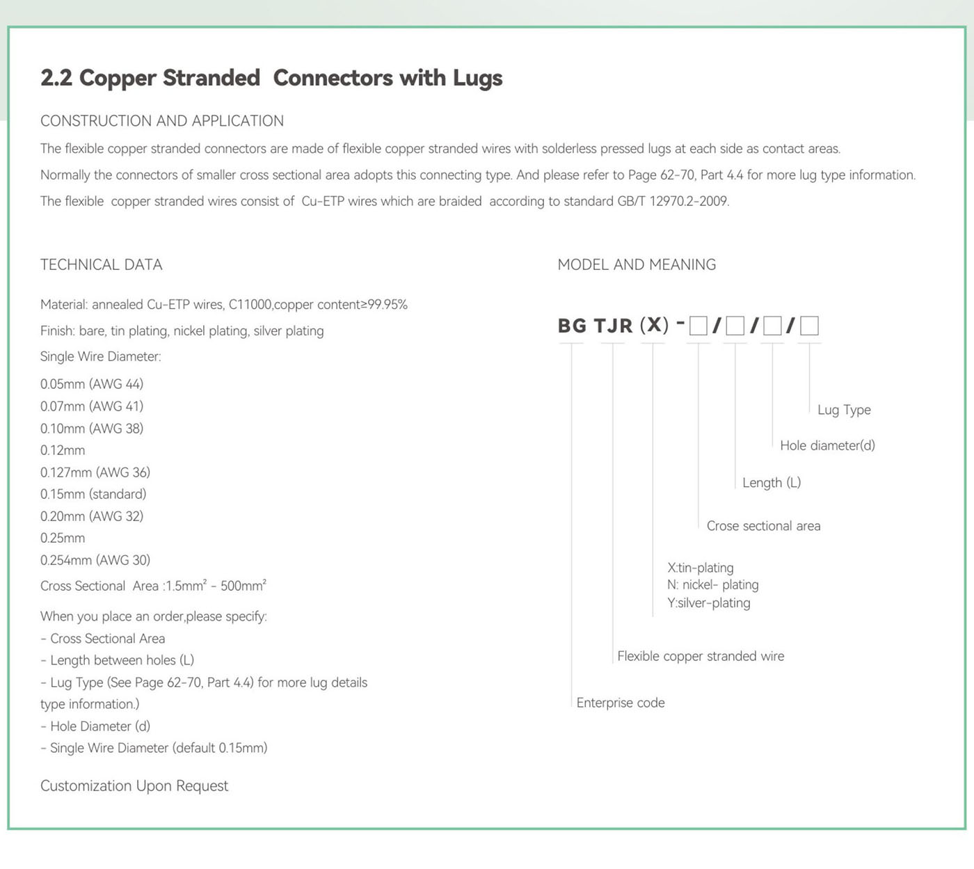 Copper Stranded Connectors With Lugs