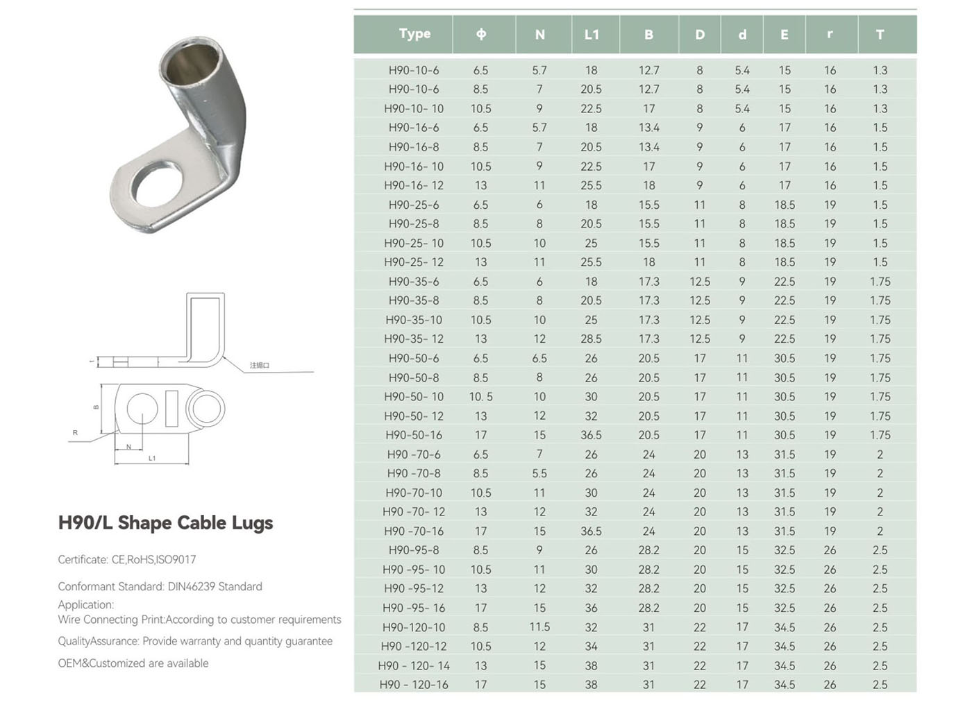 H90/L Shape Cable Lugs