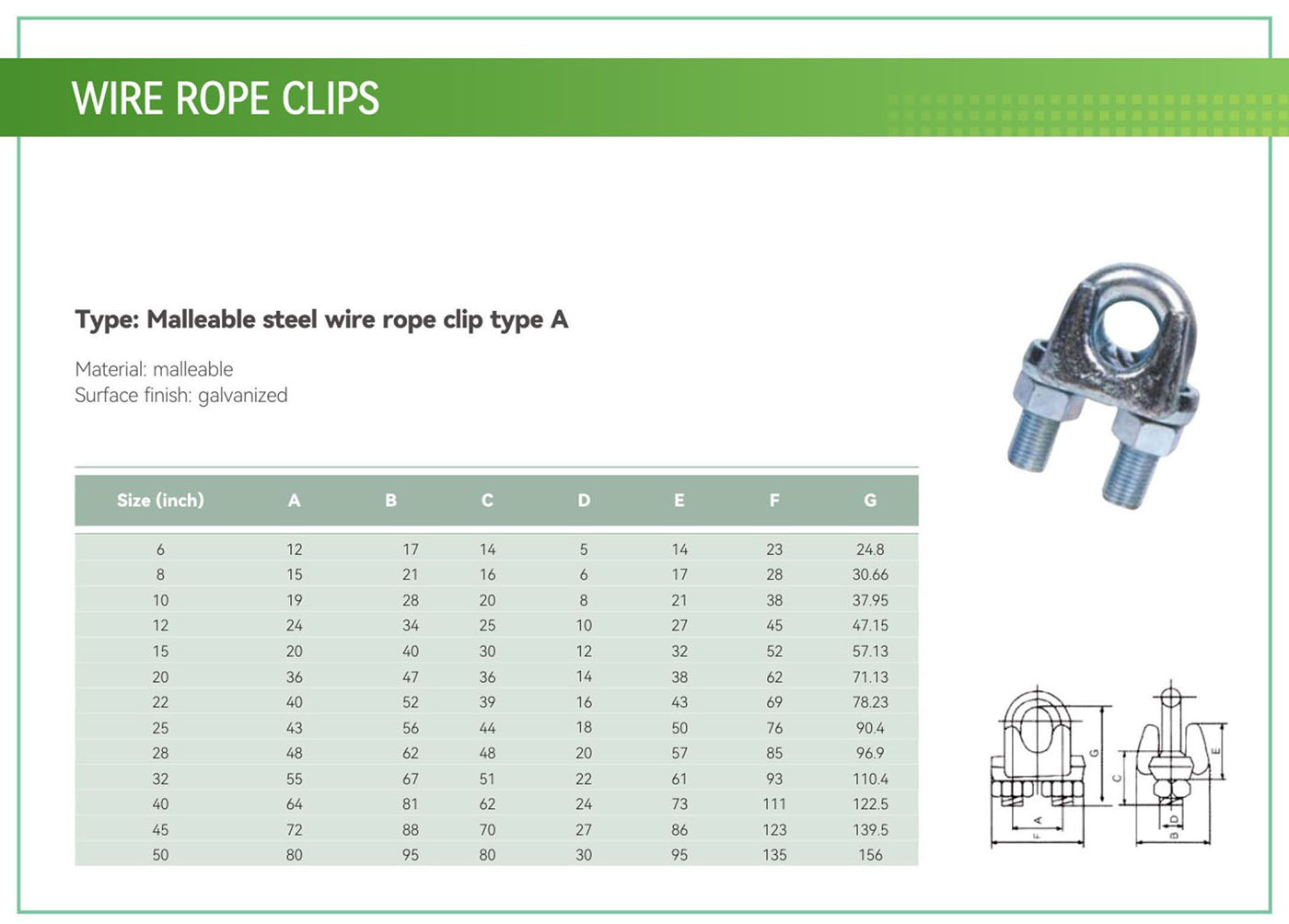 Malleable steel wire rope clip type A