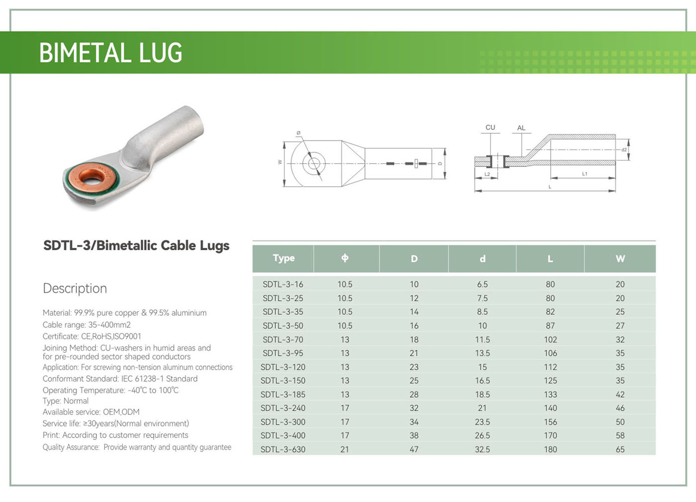 SDTL-3/Bimetallic Cable Lugs
