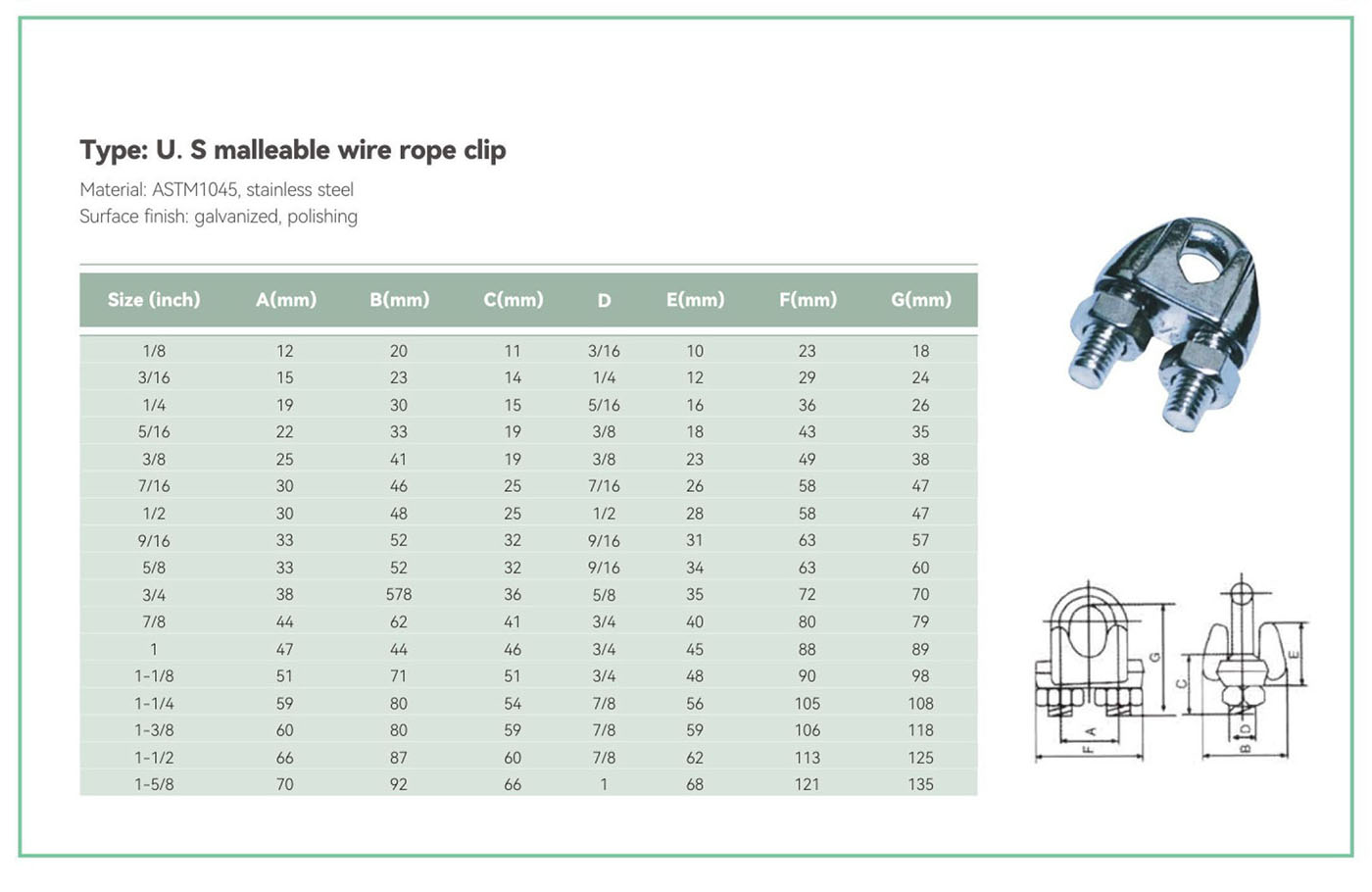 U.S malleable wire rope clip